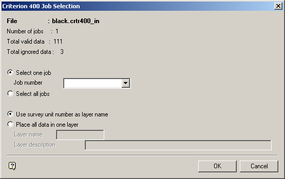 Select this option to put all data points into one layer. You will need to specify the name of the layer (a maximum of 40 alphanumeric characters) and, if desired, a description for the layer (80 alphanumeric characters).