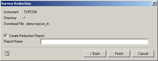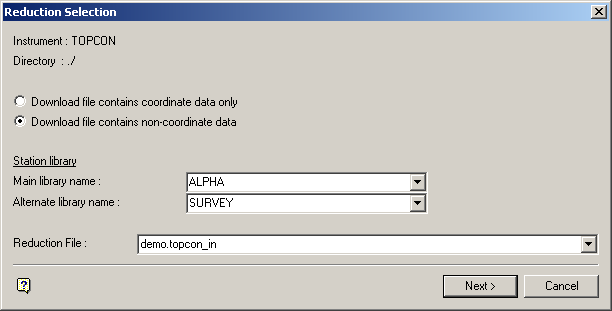 Enter, or select from the drop-down list, the name of the download file that you want to reduce. The drop-down list contains all of the download files that are applicable to the TOPCON instrument, that is, files with the extension .topcon_in.