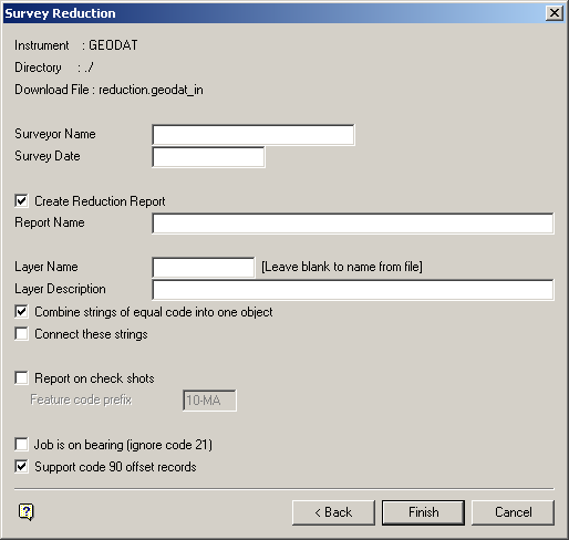 The GEODAT Reduction Data Summary panel is then displayed. This is a summary panel that to verify the details prior to forming the reduced objects.