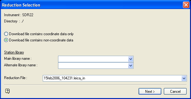 Enter, or select from the drop-down list, the name of the download file that you want to reduce. The drop-down list contains all of the download files that are applicable to the SDR instrument, that is, files with the extension .sdr_in.