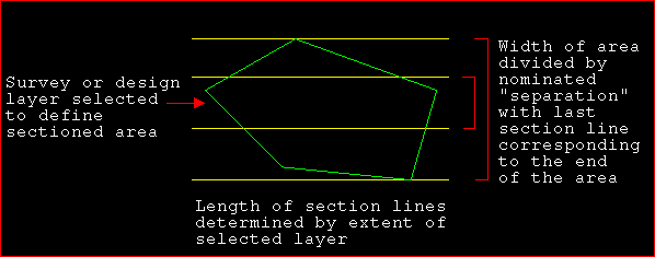 To accept the panel. The section lines are generated. If the area does not divide equally by the nominated separation, an extra section is inserted to coincide with the end of the area, ensuring that the full extent of the layer is covered.