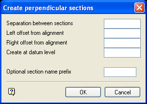 Indicate the other end of the alignment line. Again, any of the design entry modes can be used. The last section line created will coincide with the point indicated here, regardless of whether the 'separation' divides equally into the distance selected or not (see Diagram 2). The following panel is then displayed.