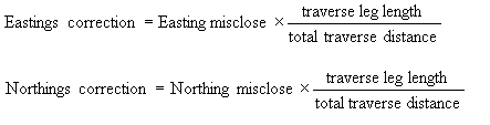 Level correction = Level misclose * (traverse leg length/total traverse distance)
