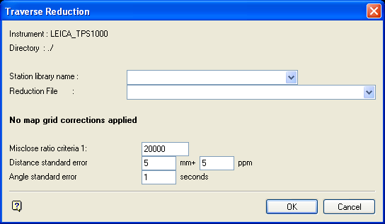 Note: Â The application of map grid corrections is set through the Apply projection corrections during reduction option (found on the Survey Total Station Settings panel). Refer to the Set Up option for more information.