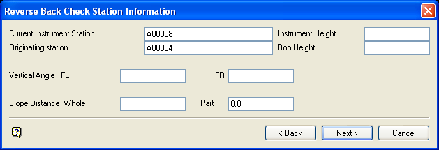 Enter the name of the backsight station. This station was the current station in the previous panel.