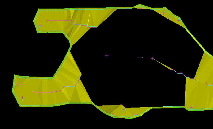 After removing these points, clear the layer containing the polygons generated by the Build 3D Drive option, and rerun the option. This is then followed by checking the triangulation once again with the Model > Triangle Utility > Check option. If the Consistency test now passes, but the Self Intersection test (crossing) fails, then you will need to move on to solving that problem as through the following solution.