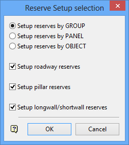 On the Underground menu, point to Coal Reserves, and then click Reserve Setup to display the Reserve Setup panel.