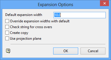 Enter the expansion width. This width is applied to the segments that were not assigned expansion widths in the Define Ring option. The unit of measurement is set in the .dg1 file. The default expansion width can also be used to replace all existing expansion widths (see below).