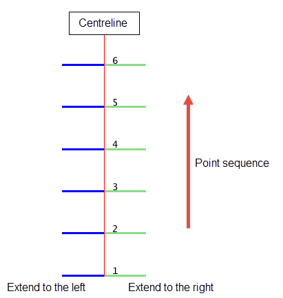 Select either Extend to the left or Extend to the right to determine which side of the centreline the cross cuts will be created. The orientation of the centreline will depend on the point sequence direction.