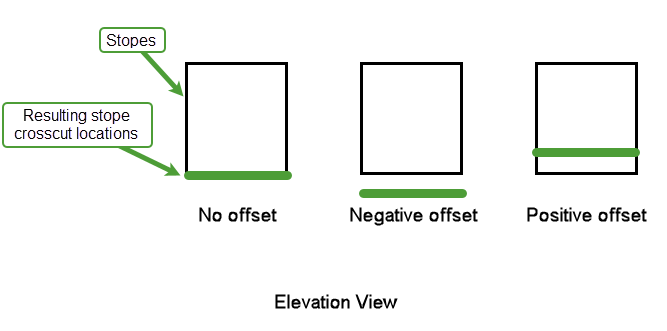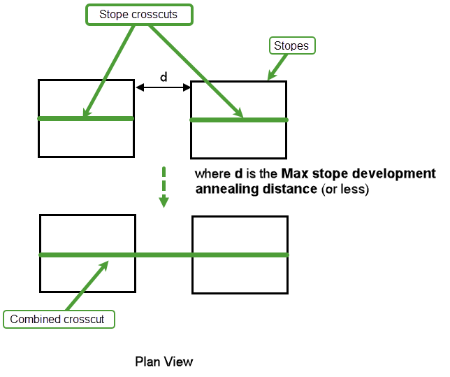 Both will combine the extents of the bottom of a stope above and the top of a stope below to create a single crosscut. The resulting crosscut will be placed along the top stope surface for levels where there are stopes present above and below, and along the bottom surface if there is no stope below the level.