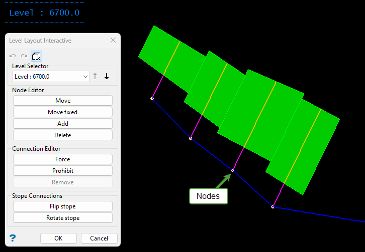 Advance to the next pane of the Level Layout interface once you have selected the desired stope shape files.