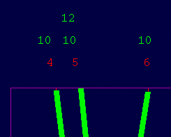 As the following diagram indicates, the hole name and cap number are displayed at the toe of the explosive columns. In the case of this particular diagram, the middle blasthole has two capped explosive columns.