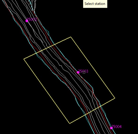 Once a bounding polygon has been the user is prompted to select a survey station (or user defined reference point) – this will be used as the reference point from which measurement marks will be calculated and created.