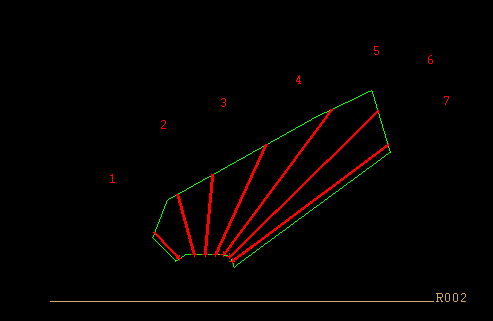The blastholes for the selected rings are then displayed. In the following diagrams, the rings for layouts R001 to R009 are displayed.