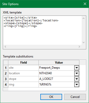 Select this check box to add custom information relating to the site to the output XML files. Click the Site Options button and the following panel is displayed.