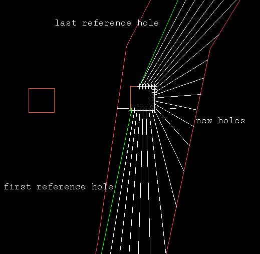 The Fill Hole Pattern option is similar to the Layout Hole Pattern option, however, the latter does not guarantee that the last created hole is parallel to a nominated structure, such as footwall or floor.