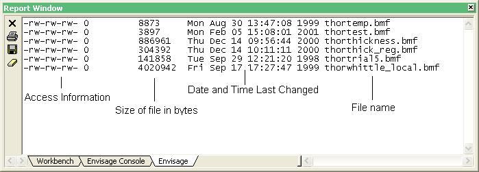 Once selected, all of the block model files found in your current working directory are listed in the Report Window.