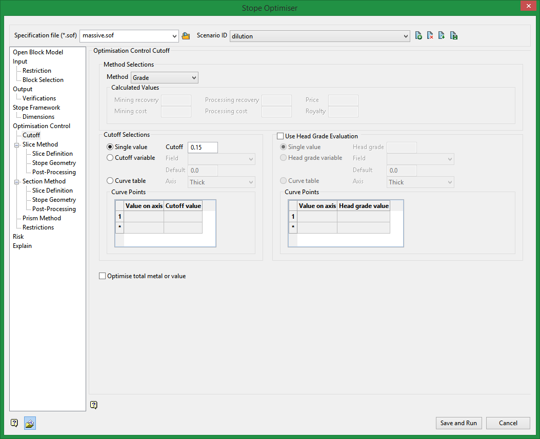 Applies one head grade cutoff to all stopes in an optimisation run.