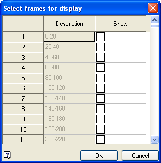 To display a frame, ensure that the corresponding Show check box is selected. Similarly to hide a frame, clear the Show check box.