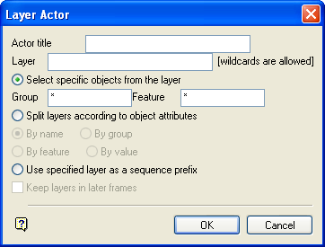 A layer actor is a group of layers and their objects. An actor can be a single layer, a list of layers (using a wildcard) or a sequence of layers. The objects from these layers can be separated into different frames according to layer names, feature codes etc.