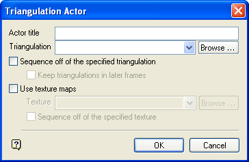 A triangulation actor is basically any group of triangulated surfaces (2D and 3D). It can be a single triangulation or a sequence of triangulations. In both cases, Pexel files can be displayed on top of the triangulations.