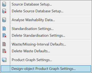 The system draws product graphs based on Maptek Chart system. Use this option to configure the settings of how those graphs are to be displayed on the screen. The product graphs can be seen from Product Graphs option in the Report from Washability Tablemenu.