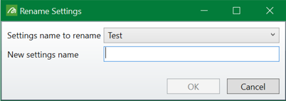 Select a settings name to be renamed from the drop-down list, enter a new name in the text box below, and hit OK.