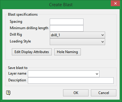 Create drillholes from two reference lines: The collar line and toe line. You can also display attributes, names of holes, drill rig, and loading style if desired.