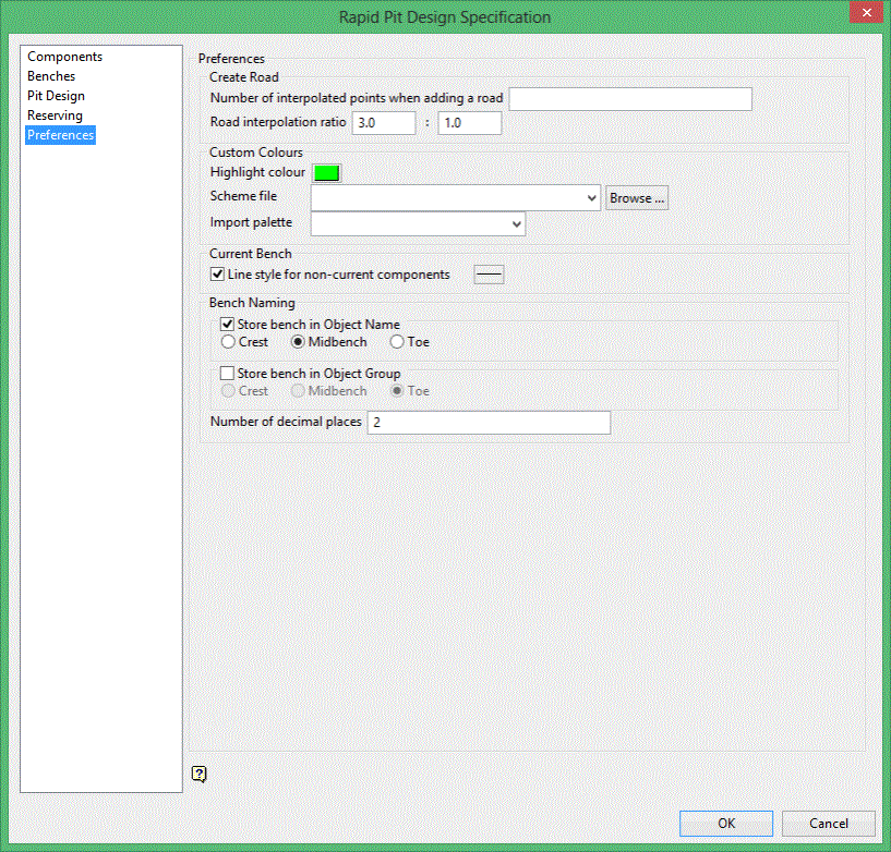 Select the highlight colour. The current bench in Rapid Pit Design will be shown in this colour.