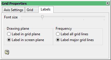 Choose the plane in which to place the labels. You can choose the display the labels in the screen plane, in which case they will always be visible regardless of the rotation of the grid, or in the grid plane.