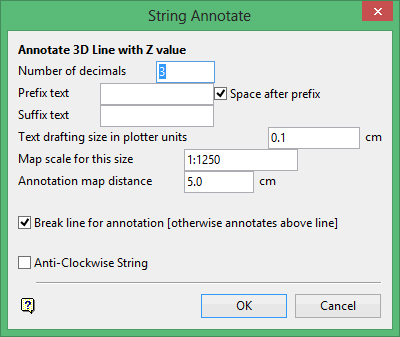 Use the Annotate String Z Value option to annotate 3D strings with their Z values.