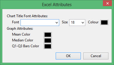 The options contained in the displayed Excel Attributes panel depend on the graph type chosen. Click on the listings below to display information on the displayed panels.