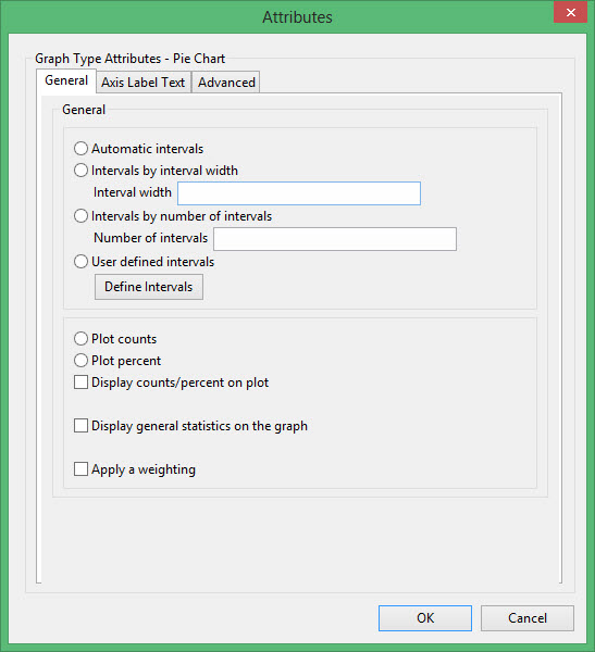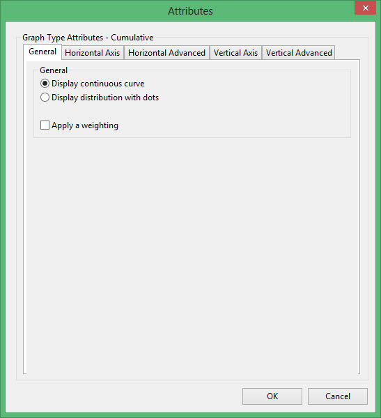 Select this checkbox if you want to apply a weighting. The weighting variable is specified once the data has been selected. The weighting variable must have the same length as the data variable to which it is applied, i.e. the same number of data values.