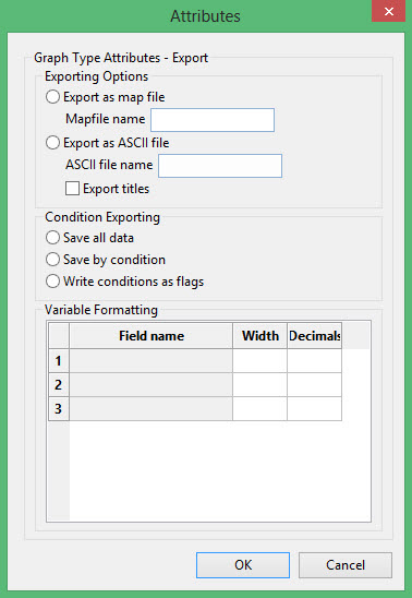 For each variable, specify the export name (field name), the width and the number of decimal places to include.