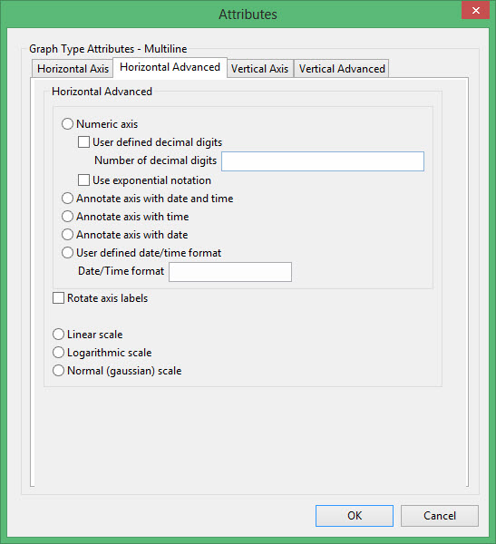 The options contained in the displayed panel are dependant upon the chosen graph type. Click on the listings below to display information on the displayed panels.