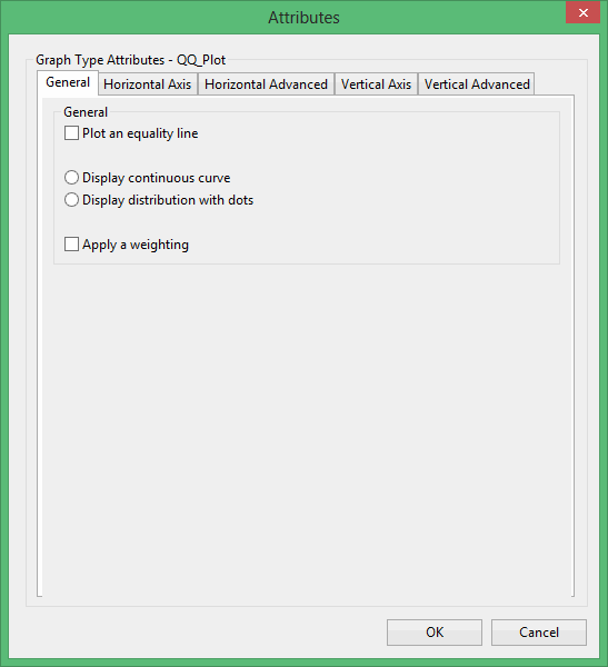 This plot type produces a graph similar to PP Plot. A point on a QQ graph is plotted by taking a percentile and finding which value corresponds to that percentile in each distribution. This pair of values is plotted as a point on the graph.