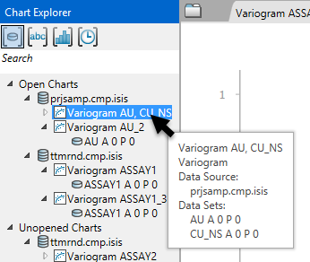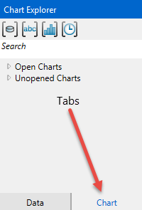 In its initial state, the Chart Explorer shows two categories, open and unopened charts. You can open a chart by double-clicking on the name of the chart in the Chart Explorer pane.