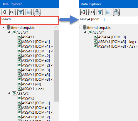 By default, expanding the Filter tree will only show the option for No Filter. However, after a filter has been defined it will appear in the list in both the Explorer Visibility pane and the Data Explorer pane.
