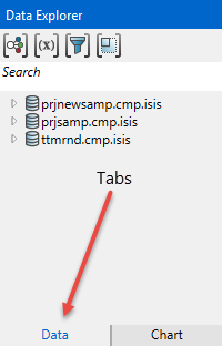 At the bottom of the Data Explorer pane select the Data tab.