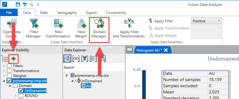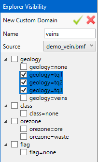 Select any number of custom domains, along with any variables, to make them available for analysis in the Data Explorer panel.