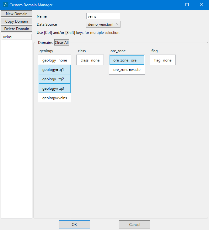 After you set up a custom domain, you can export the domain information to a block model calculation script or a database calculation script.