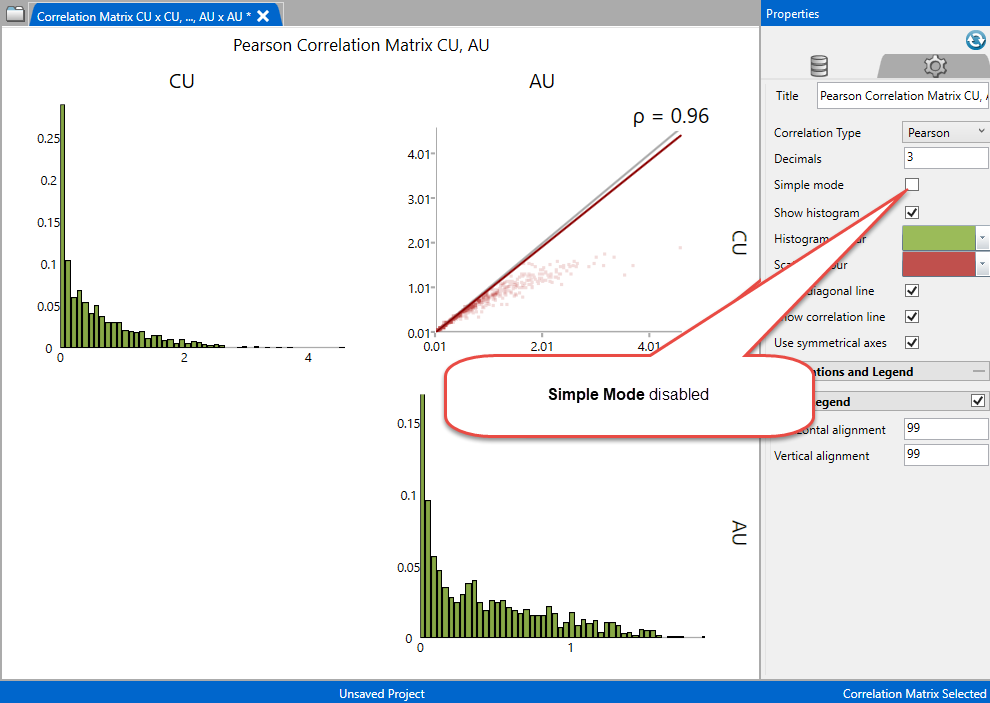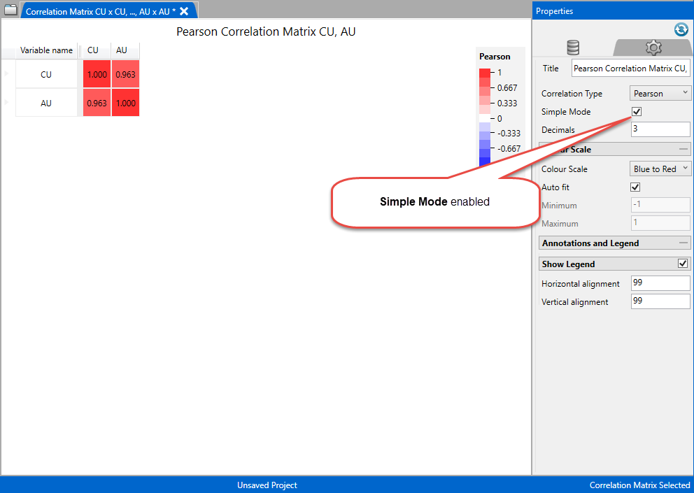 Simple Mode - Enable this to view data as correlation matrix.