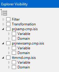 After any data modifiers have been defined they will appear in the lists located in both the Explorer Visibility pane and the Data Explorer pane.