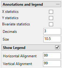 Indicates a cutoff value for the estimation, generating 4 subareas for the scatter, the percentage of each area is displayed in the bivariate statistics.
