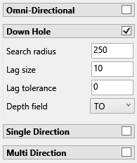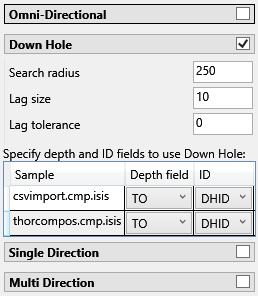 Fan variograms will now include an option to select the depth field to allow creating the orthogonal variogram from them with the downhole direction.