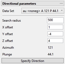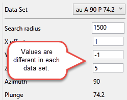 The current data set that is being display on the chart is listed, showing the azimuth and plunge angle.