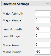 The angles for Major, Semi-major, and Minor are automatically calculated from the settings entered in the Plane tab, however, you can edit those settings if you desire. If the Semi-major is not orthogonal (90 degrees) to the Major, then a warning will be given. However, it is not required that the angles be orthogonal to each other. If you want the minor angle to be orthogonal to the Major and Semi-major, then click the Calculate Minor button and the two angles will be automatically filled in.