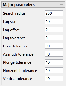Tip: Set this value to a typical spacing (or larger) between your data, for example, if your data is on a 100 × 100 × 10 grid, set a horizontal distance of 100 and a vertical tolerance of 10. If you receive too few sample pairs, try increasing the tolerances to capture more data otherwise artifacts such as "hole effects" may occur.