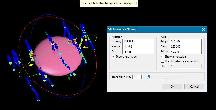 Click this button to open an interactive window in the Vulcan 3D viewer. You can use the controls on the ellipsoid to set the direction parameters.