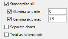Select this checkbox if you want to standardise the variogram sill by dividing the results by the sample variance. This is useful when calculating a semivariogram because instead of reaching the sill at the sample variance, it will reach it at 1.